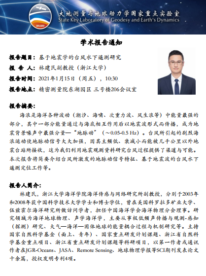 2021年1月15日PA真人国际大地测量与地球动力学国家重点实验室学术预告