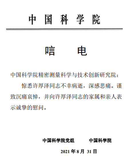 当前位置:PA真人国际 > 专题 > 深切缅怀许厚泽院士 > 各界唁电
